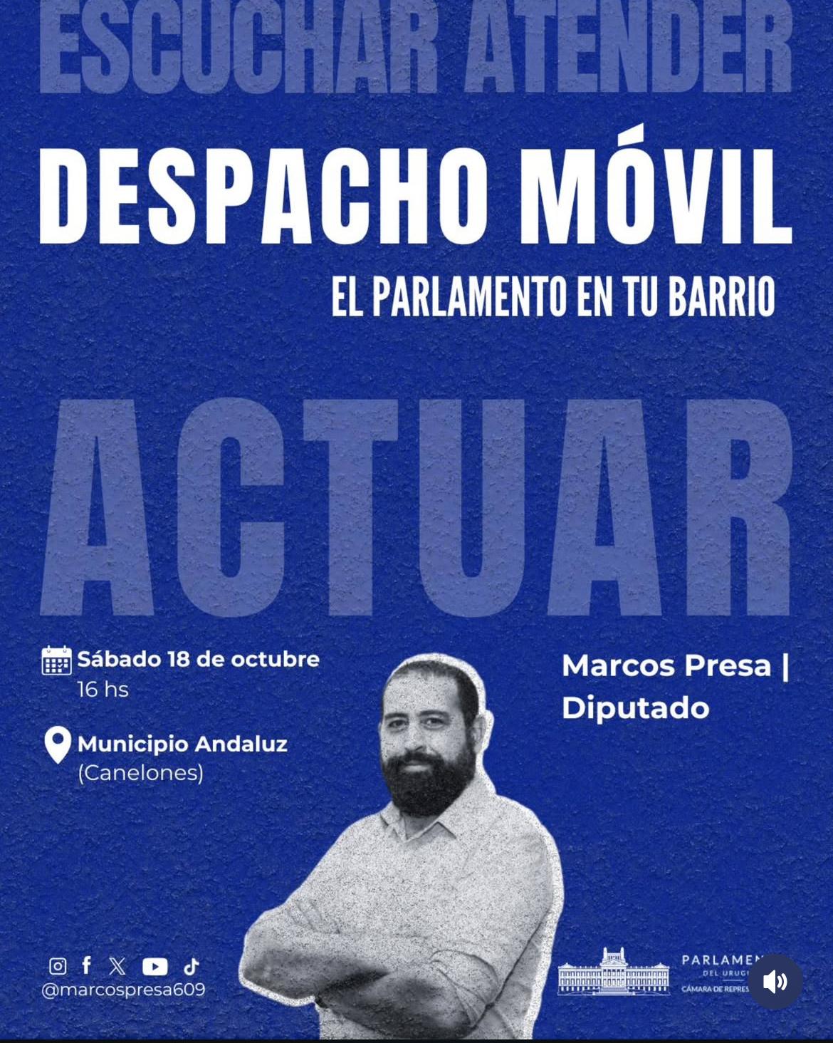 El sábado 18 de octubre, nos volvemos a encontrar en otro Despacho Móvil, esta vez en Canelones, junto a vecinos y vecinas del municipio Andaluz.